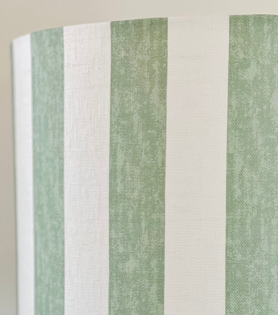 Inge Holst's Astrid Neptune fabric features wide stripes in a sublime shade of green. We've crafted this beautiful 100% linen fabric into a 35cm diameter x 28cm high drum lampshade.